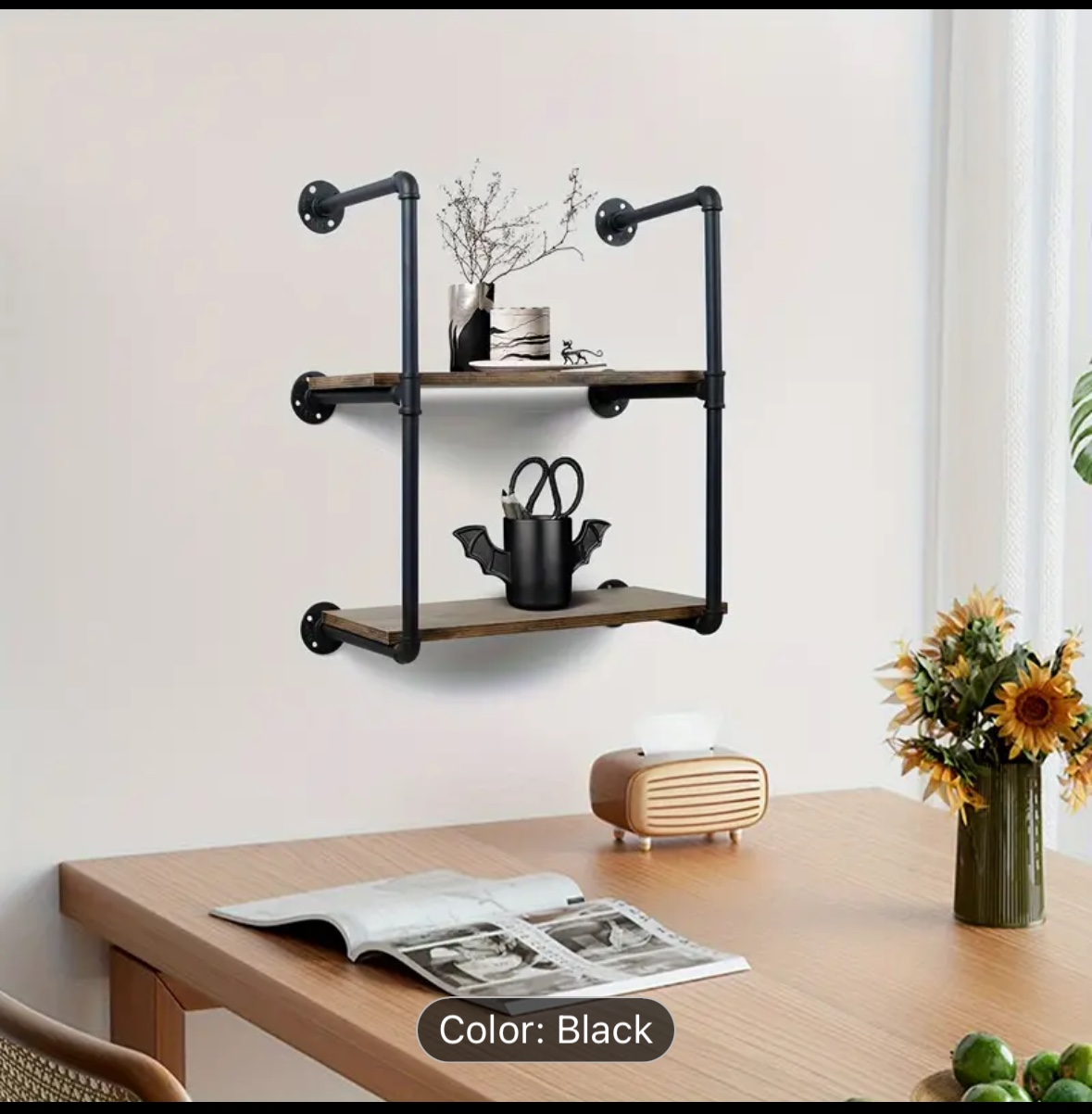 Industrial Pipe Shelves, Double Layer Rustproof Wall Mounted Bookshelf, Metal Bracket Storage Wall Shelves For Bedroom, Kitchen, Living Room, Bathroom