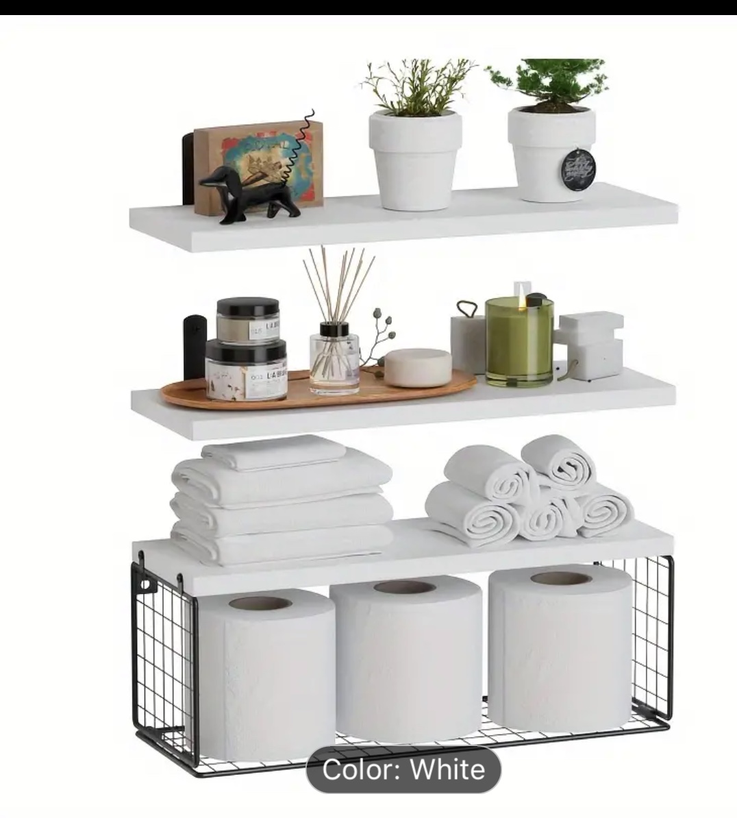 3pcs Floating Shelves With Storage Baskets