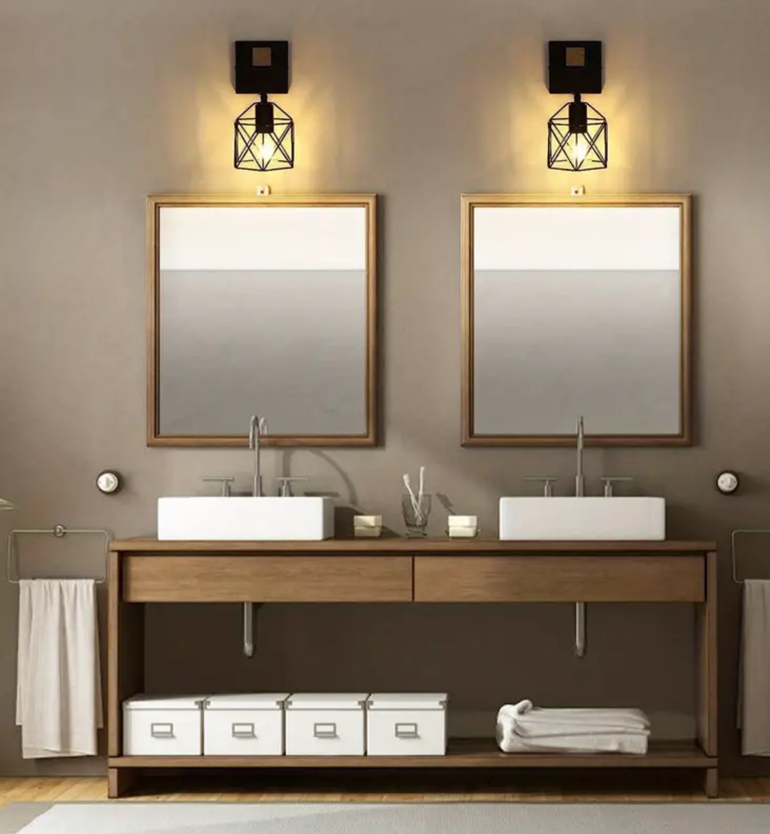 Of 2, Industrial Wall Sconces For Hallway, Cage Wall Mount Light Fixture Industrial Farmhouse Lighting